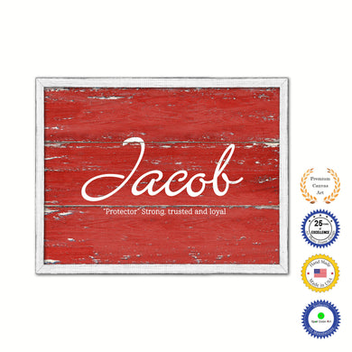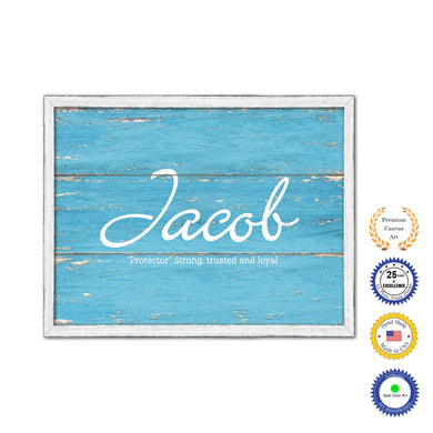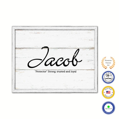Jacob Name Plate White Wash Wood Frame Canvas Print Boutique Cottage Decor Shabby Chic