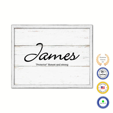 James Name Plate White Wash Wood Frame Canvas Print Boutique Cottage Decor Shabby Chic