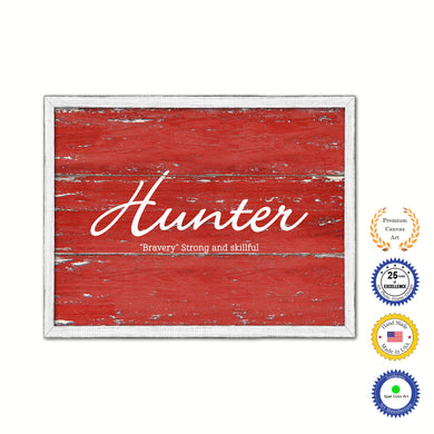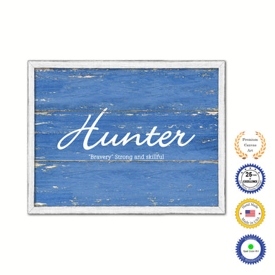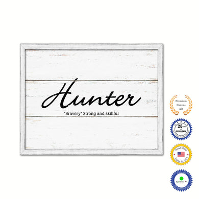 Hunter Name Plate White Wash Wood Frame Canvas Print Boutique Cottage Decor Shabby Chic