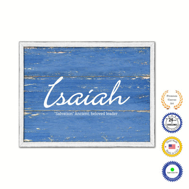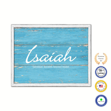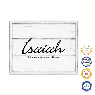 Isaiah Name Plate White Wash Wood Frame Canvas Print Boutique Cottage Decor Shabby Chic