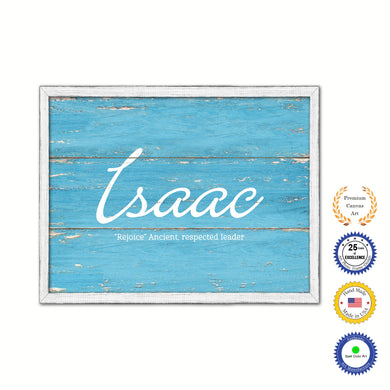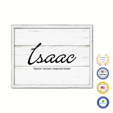 Isaac Name Plate White Wash Wood Frame Canvas Print Boutique Cottage Decor Shabby Chic