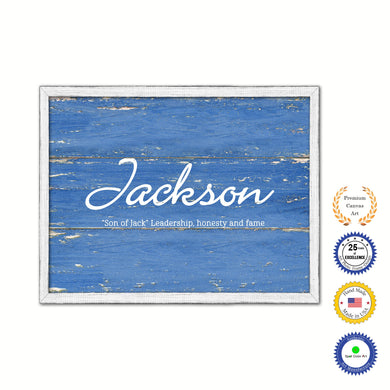 Jackson Name Plate White Wash Wood Frame Canvas Print Boutique Cottage Decor Shabby Chic