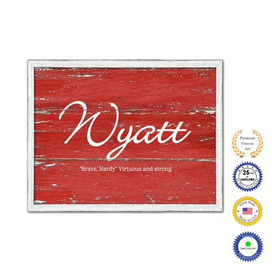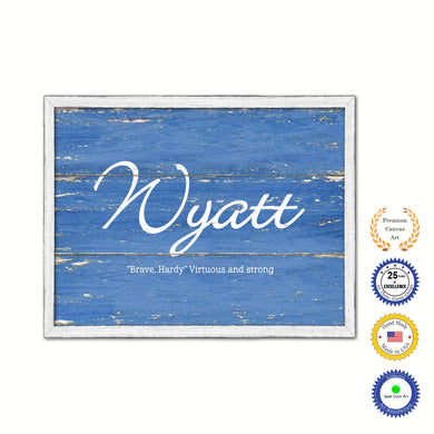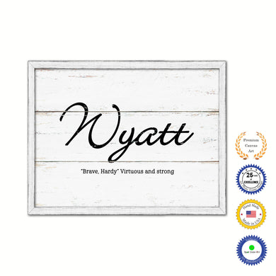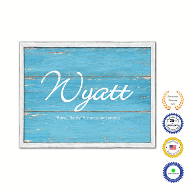 Wyatt Name Plate White Wash Wood Frame Canvas Print Boutique Cottage Decor Shabby Chic