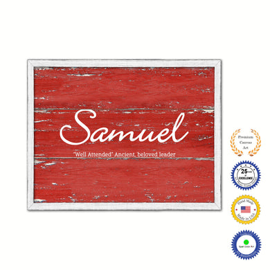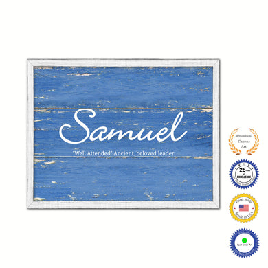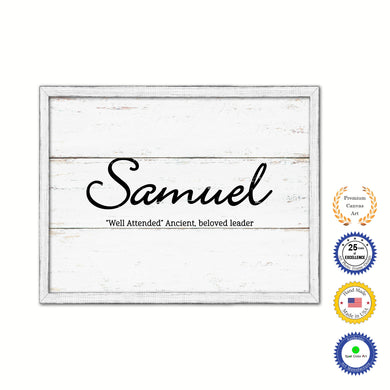 Samuel Name Plate White Wash Wood Frame Canvas Print Boutique Cottage Decor Shabby Chic