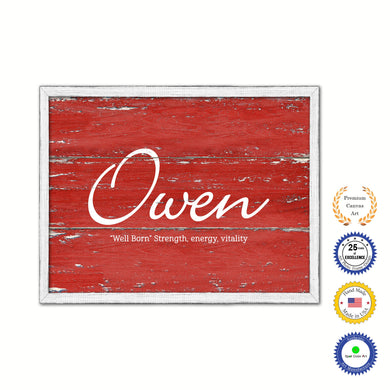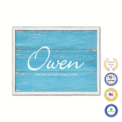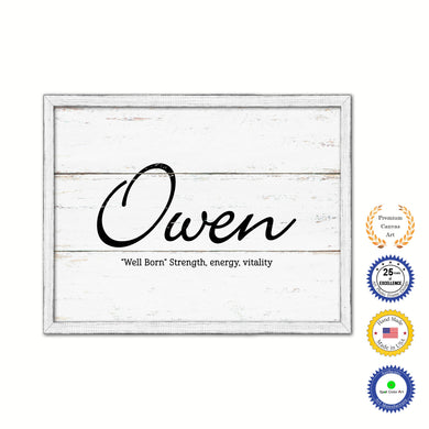 Owen Name Plate White Wash Wood Frame Canvas Print Boutique Cottage Decor Shabby Chic