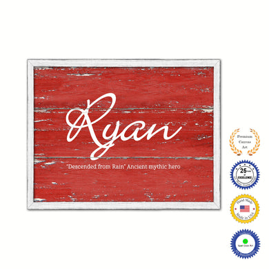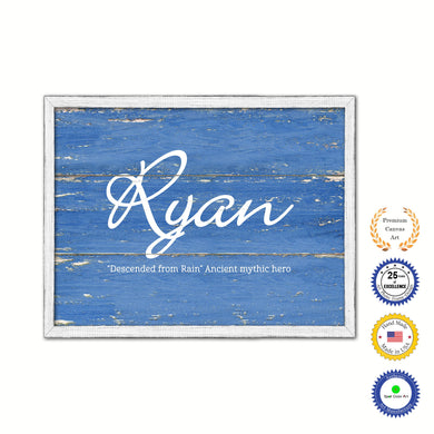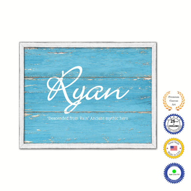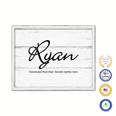 Ryan Name Plate White Wash Wood Frame Canvas Print Boutique Cottage Decor Shabby Chic