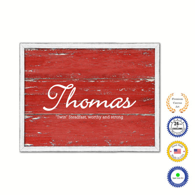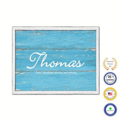 Thomas Name Plate White Wash Wood Frame Canvas Print Boutique Cottage Decor Shabby Chic