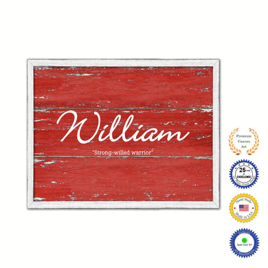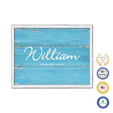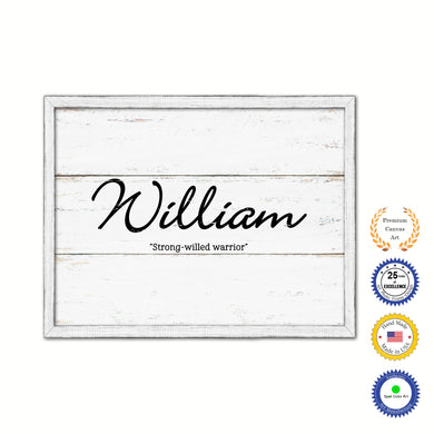 William Name Plate White Wash Wood Frame Canvas Print Boutique Cottage Decor Shabby Chic