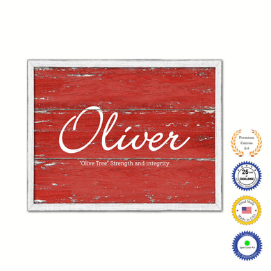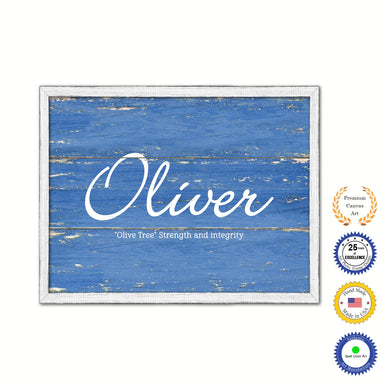Oliver Name Plate White Wash Wood Frame Canvas Print Boutique Cottage Decor Shabby Chic