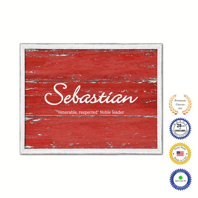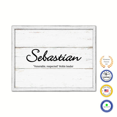 Sebastian Name Plate White Wash Wood Frame Canvas Print Boutique Cottage Decor Shabby Chic