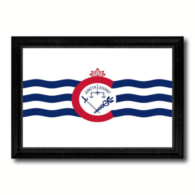 Cleveland City Ohio State Flag Canvas Print Black Picture Frame