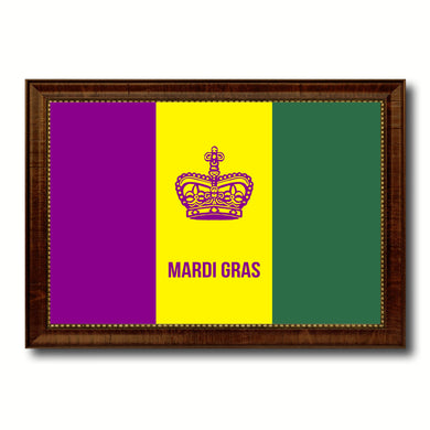 New Orleans Mardi Gras Flag Canvas Print Brown Picture Frame
