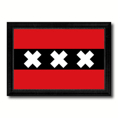 Amsterdam City Netherlands Country Flag Canvas Print Black Picture Frame