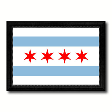 Chicago City Illinois State Flag Canvas Print Black Picture Frame