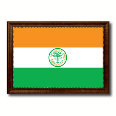 Miami City Florida State Flag Canvas Print Brown Picture Frame