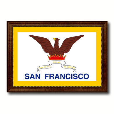 San Francisco City San Francisco State Flag Canvas Print Brown Picture Frame