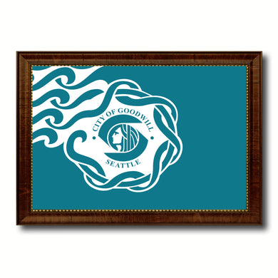 Seattle City Washington State Flag Canvas Print Brown Picture Frame