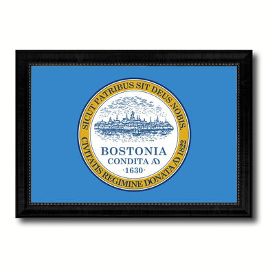 Boston City Massachusetts State Flag Canvas Print Black Picture Frame
