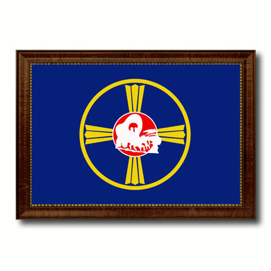 Omaha City Nebraska State Flag Canvas Print Brown Picture Frame