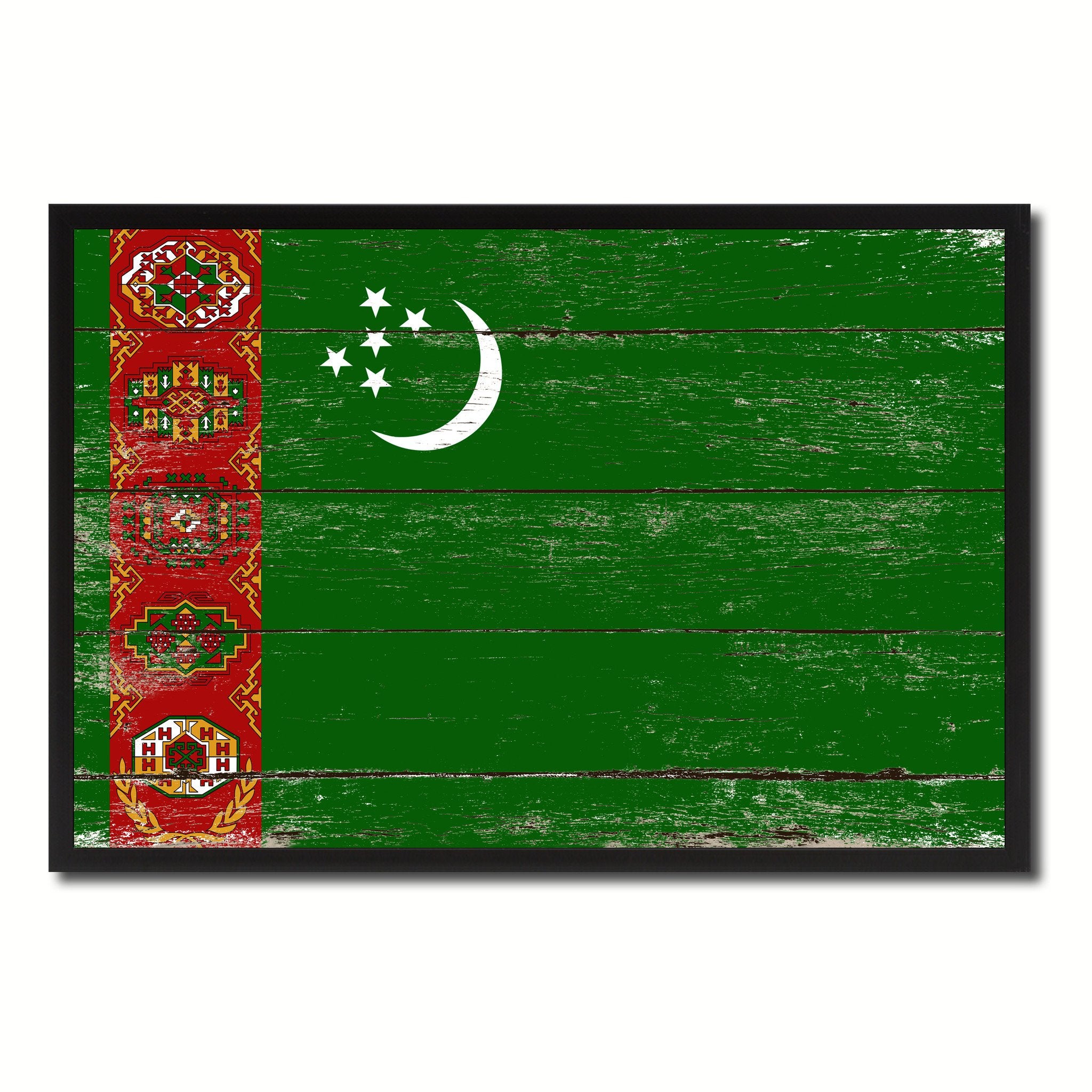 Turkmenistan Country National Flag Vintage Canvas Print with Picture Frame Home Decor Wall Art Collection Gift Ideas