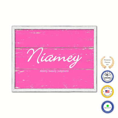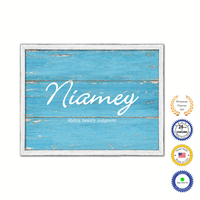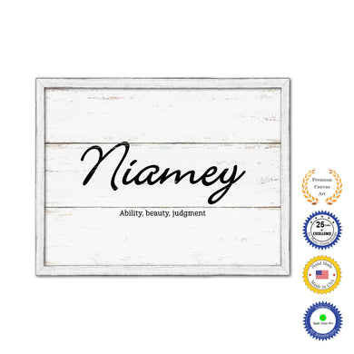 Niamey Name Plate White Wash Wood Frame Canvas Print Boutique Cottage Decor Shabby Chic