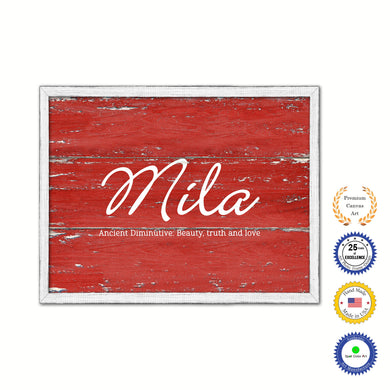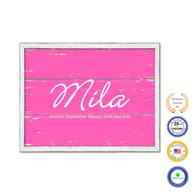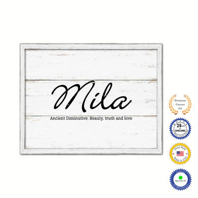 Mila Name Plate White Wash Wood Frame Canvas Print Boutique Cottage Decor Shabby Chic