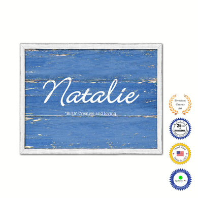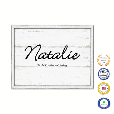 Natalie Name Plate White Wash Wood Frame Canvas Print Boutique Cottage Decor Shabby Chic
