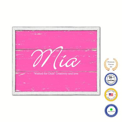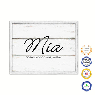 Mia Name Plate White Wash Wood Frame Canvas Print Boutique Cottage Decor Shabby Chic