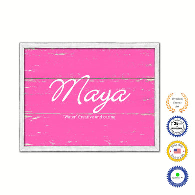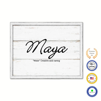 Maya Name Plate White Wash Wood Frame Canvas Print Boutique Cottage Decor Shabby Chic