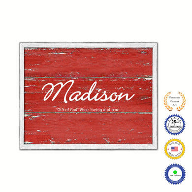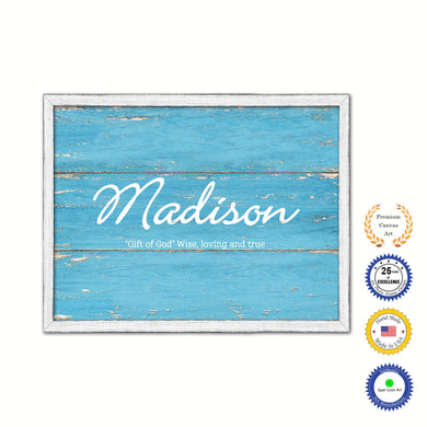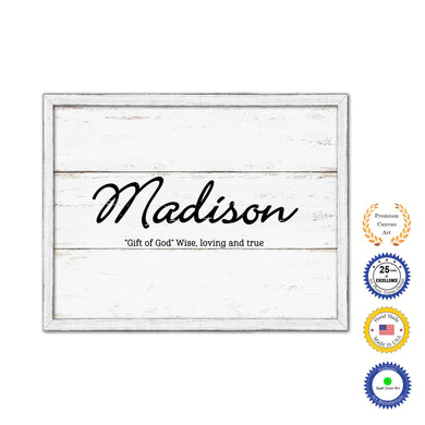 Madison Name Plate White Wash Wood Frame Canvas Print Boutique Cottage Decor Shabby Chic