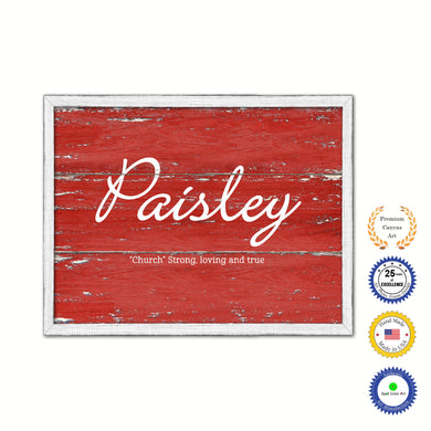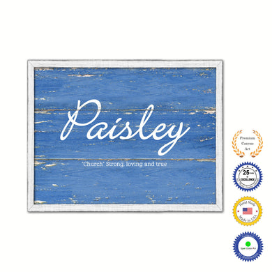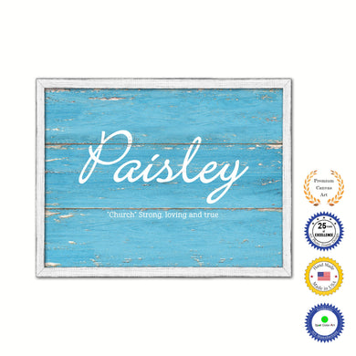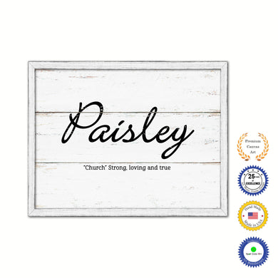 Paisley Name Plate White Wash Wood Frame Canvas Print Boutique Cottage Decor Shabby Chic