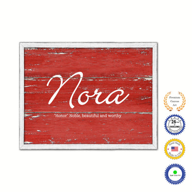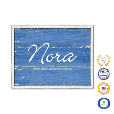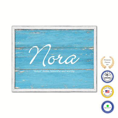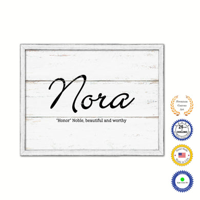 Nora Name Plate White Wash Wood Frame Canvas Print Boutique Cottage Decor Shabby Chic