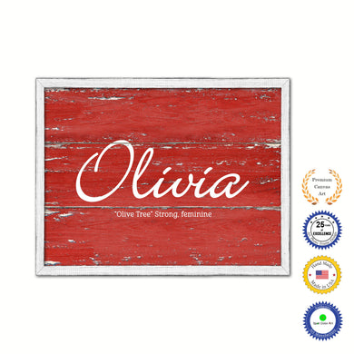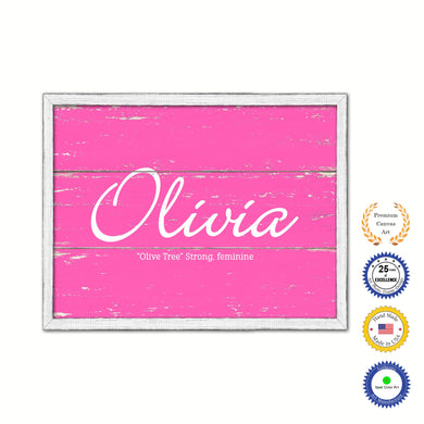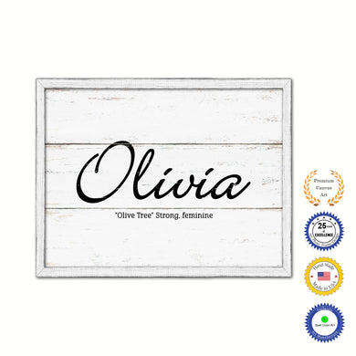 Olivia Name Plate White Wash Wood Frame Canvas Print Boutique Cottage Decor Shabby Chic