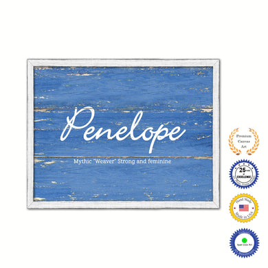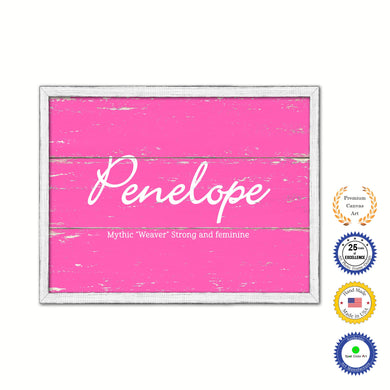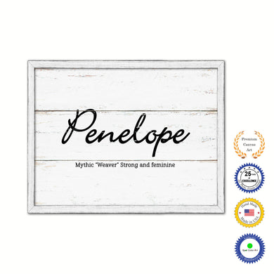 Penelope Name Plate White Wash Wood Frame Canvas Print Boutique Cottage Decor Shabby Chic