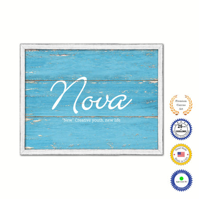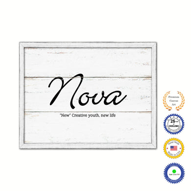 Nova Name Plate White Wash Wood Frame Canvas Print Boutique Cottage Decor Shabby Chic