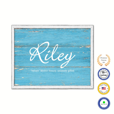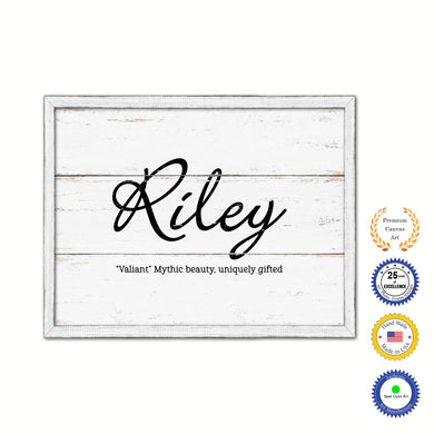 Riley Name Plate White Wash Wood Frame Canvas Print Boutique Cottage Decor Shabby Chic