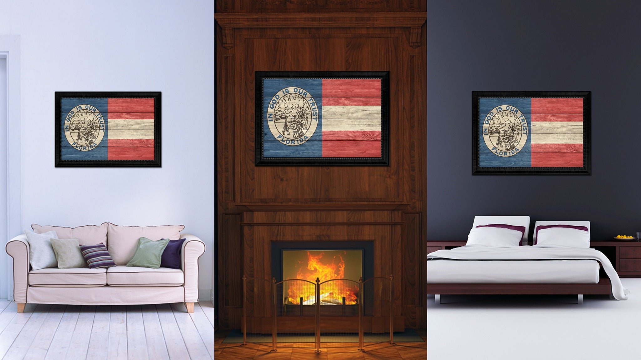 Civil War Florida Military Flag Texture Canvas Print with Black Picture Frame Gift Ideas Home Decor Wall Art
