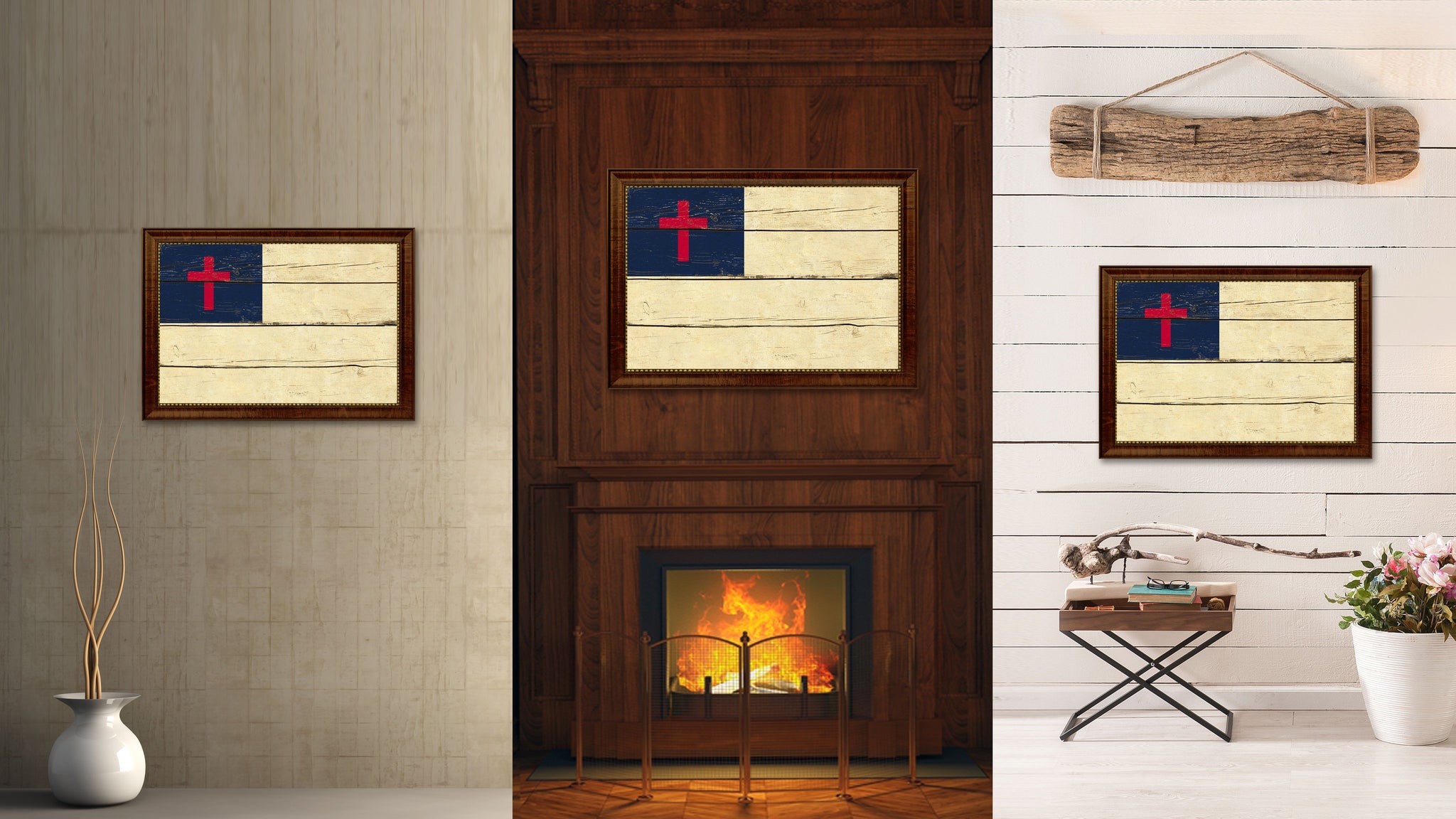 Kayso Christian Religious Flag Vintage Canvas Print with Brown Picture Frame Gifts Ideas Home Decor Wall Art Decoration