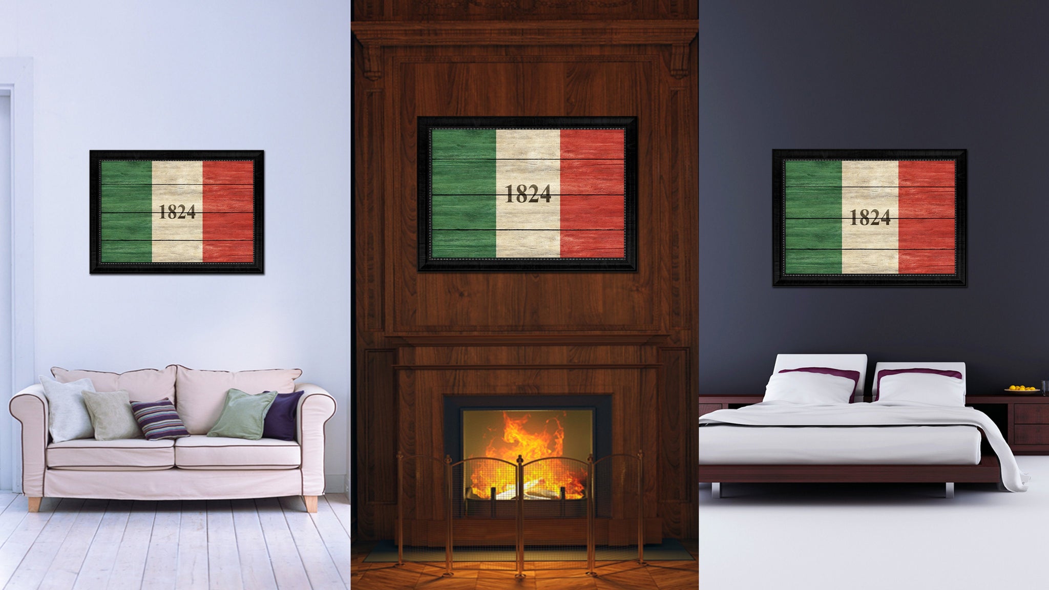 Texas 1824 ALAMO Historical Battle Military Flag Texture Canvas Print with Black Picture Frame Gift Ideas Home Decor Wall Art