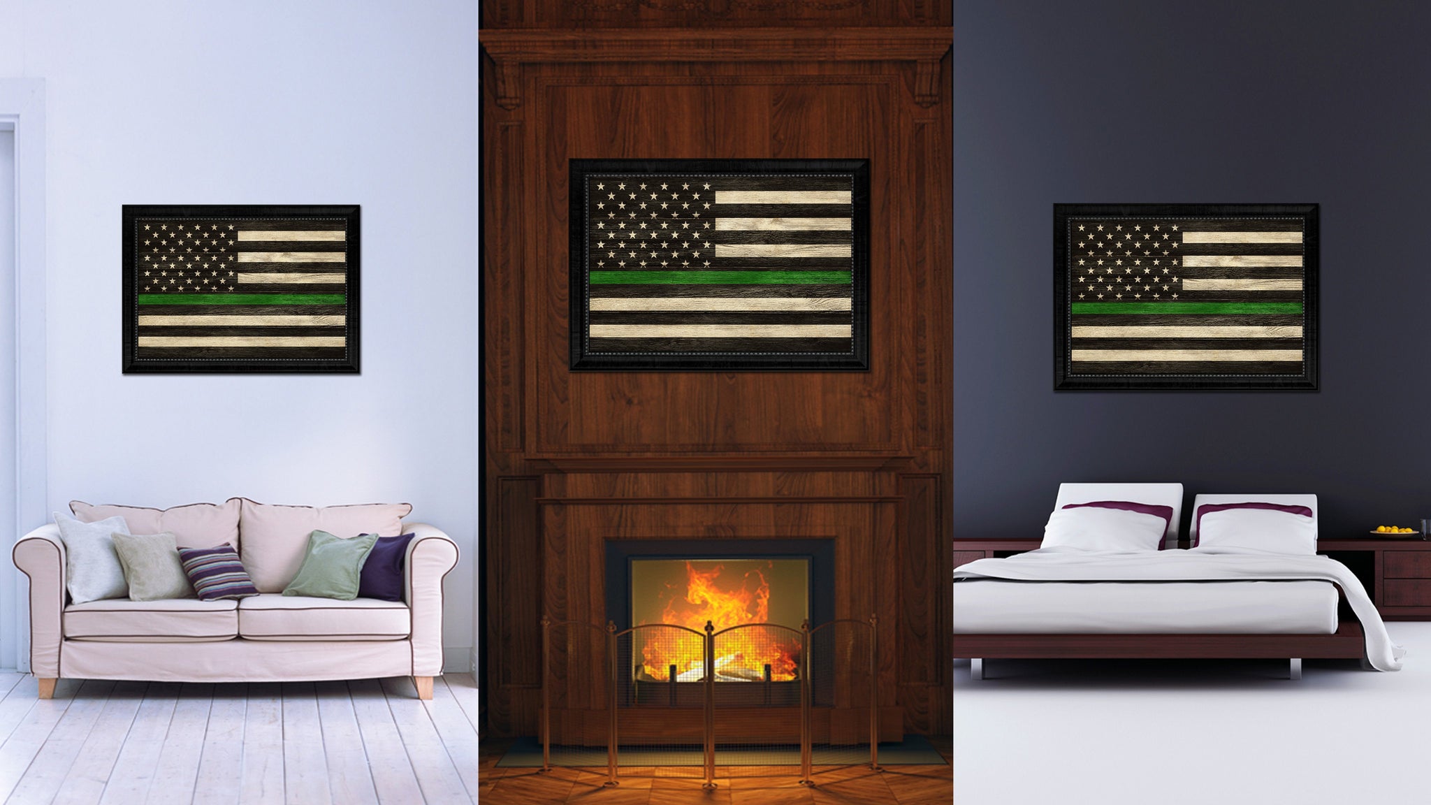 • Load image into Gallery viewer, Thin Green Line Support Border Patrol American USA Flag Texture Canvas Print with Black Picture Frame Gift Ideas Home Decor Wall Art