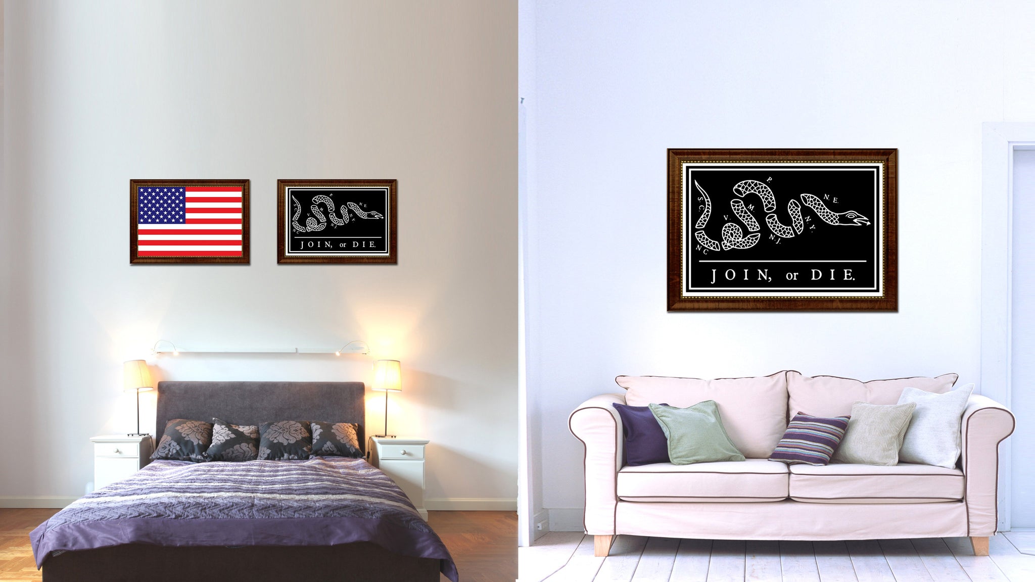 US Join or Die Snake Colonial Revolutionary War Military Flag Canvas Print with Brown Picture Frame Home Decor Wall Art Gift Ideas