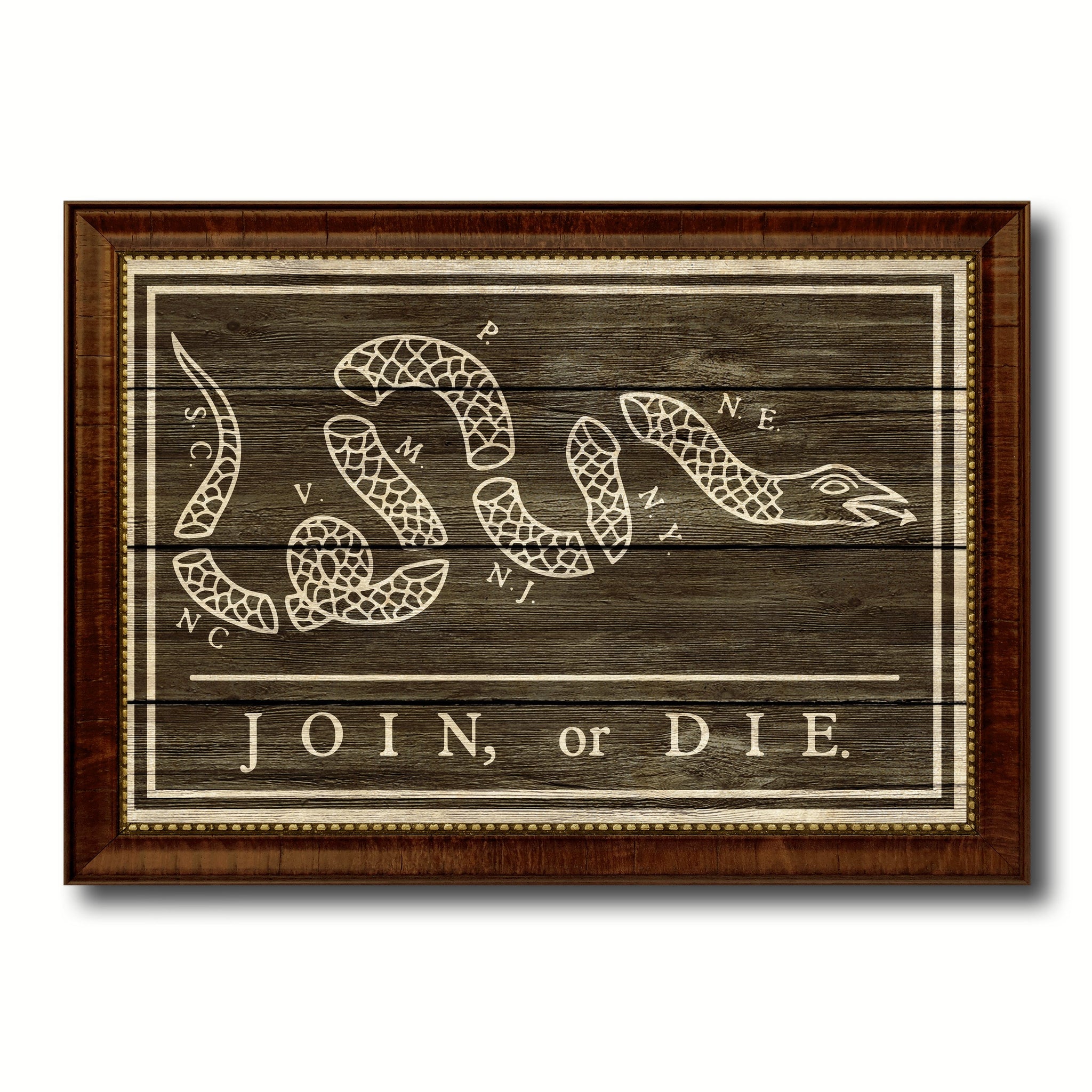 US Join or Die Snake Colonial Revolutionary War Military Flag Texture Canvas Print with Brown Picture Frame Home Decor Wall Art Gifts