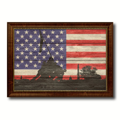 Iwo Jima World War 2 Veterans Flag Texture Canvas Print with Brown Picture Frame Gifts Home Decor Wall Art Collectible Decoration Artwork