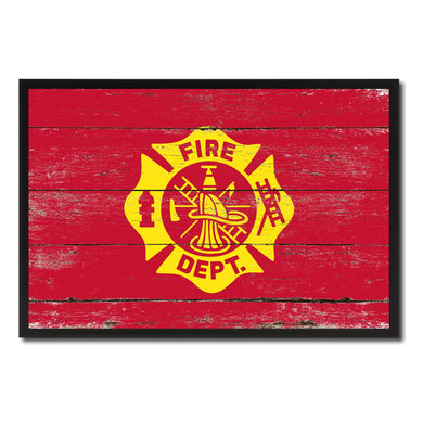 Fire Department Fire Fighter USA Flag Vintage Canvas Print with Picture Frame Home Decor Man Cave Wall Art Collectible Decoration Artwork Gifts