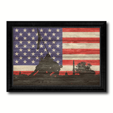 Iwo Jima World War 2 Veterans Flag Texture Canvas Print with Black Picture Frame Home Decor Man Cave Wall Art Collectible Decoration Artwork Gifts