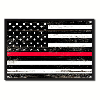 Thin Red Line Honoring our Men and Women of Law Enforcement American USA Flag Vintage Canvas Print with Picture Frame Home Decor Man Cave Wall Art Collectible Decoration Artwork Gifts
