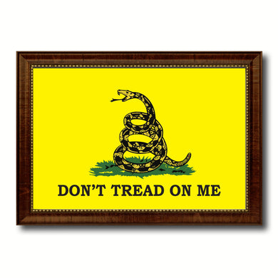 Gadsden Don't Tread on Me Military Flag Canvas Print with Brown Picture Frame Home Decor Wall Art Gift Ideas
