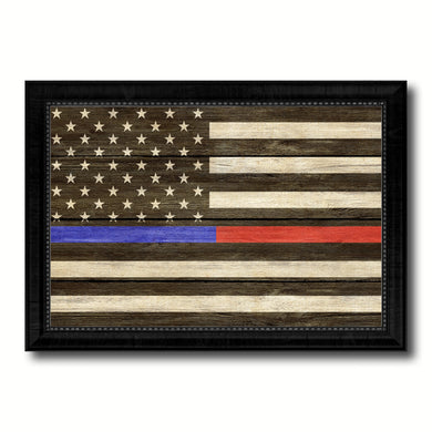 Thin Blue Line Police & Thin Red Line Firefighter Respect & Honor Law Enforcement First Responder American USA Flag Texture Canvas Print with Picture Frame Home Decor Wall Art