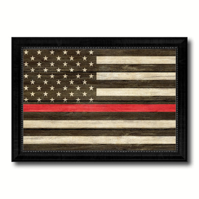 Thin Red Line Honoring our Men and Women of Law Enforcement American USA Flag Texture Canvas Print with Black Picture Frame Gift Ideas Home Decor Wall Art