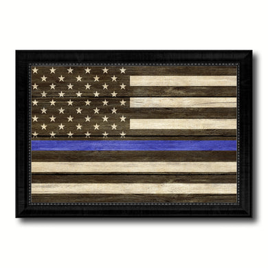 Thin Blue Line Honoring our Men and Women of Law Enforcement American Police USA Flag Texture Canvas Print with Black Picture Frame Gift Ideas Home Decor Wall Art